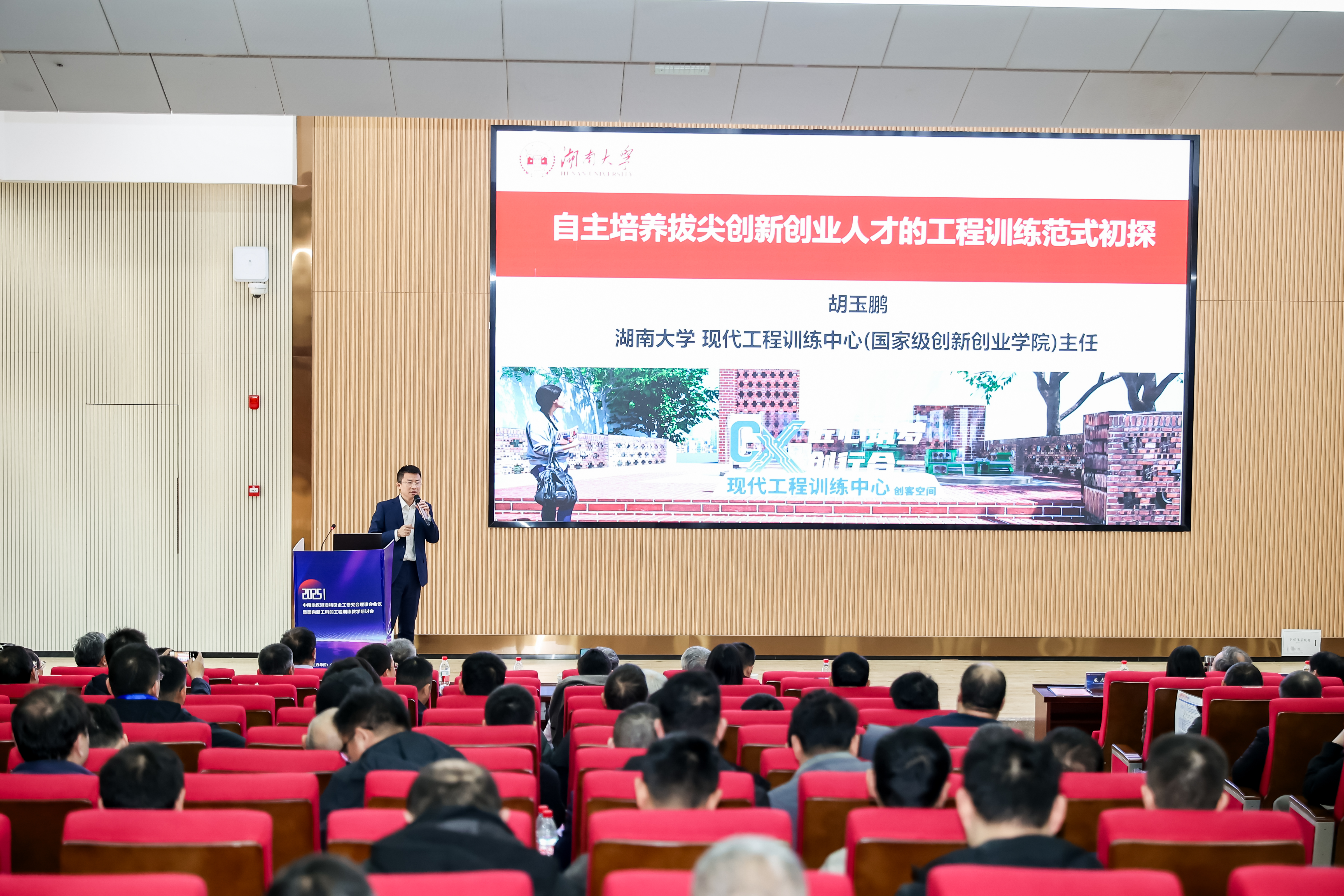 2025中南地区港澳特区金工研究会理事会议暨面向新工科的工程训练教学研讨会于11月21日-23日在长沙召开,中心主任胡玉鹏教授在会上作了题为“自主培养拔尖创新创业人才的工程训练范式初探”的邀请报告,阐述了本中心相关的实践探索与改革经验。